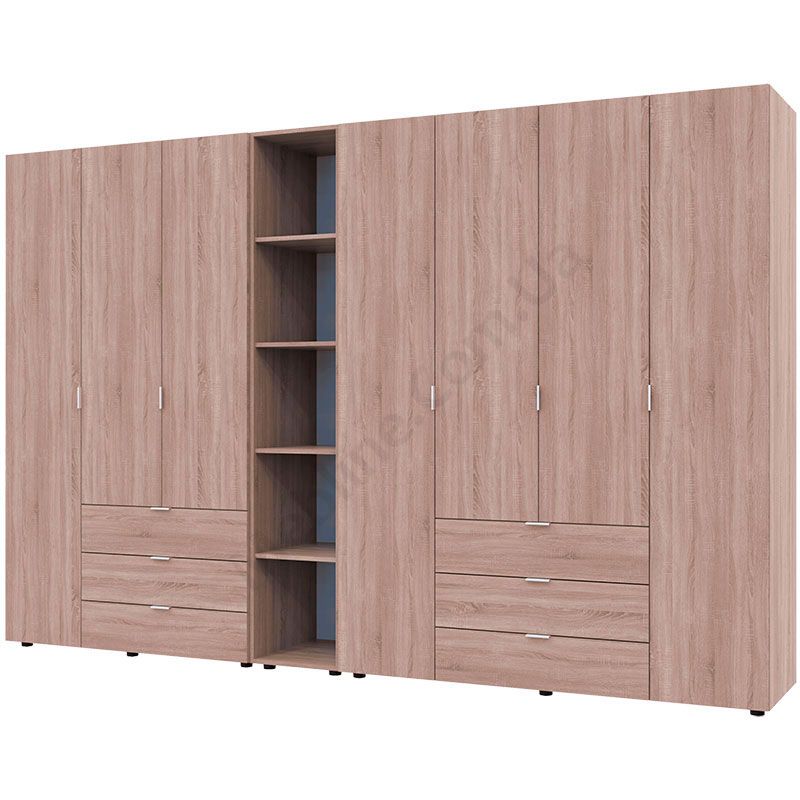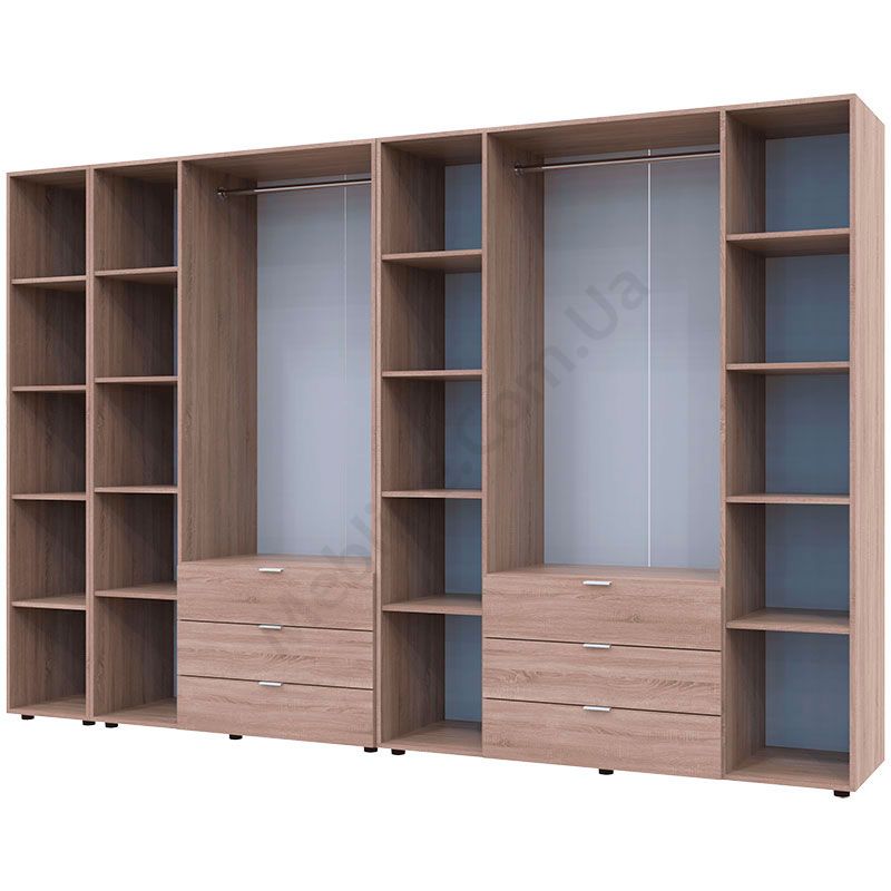 Чотиридверна та тридверна шафи зі стелажем та висувними шухлядами.