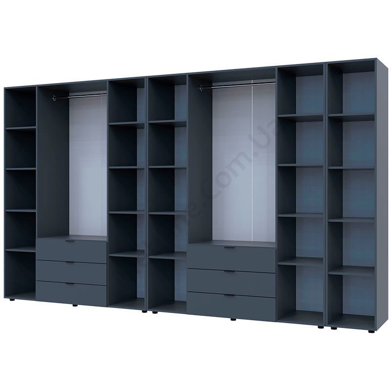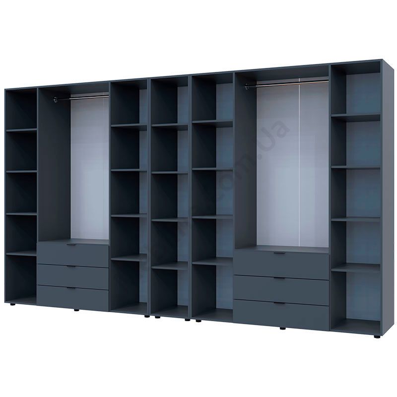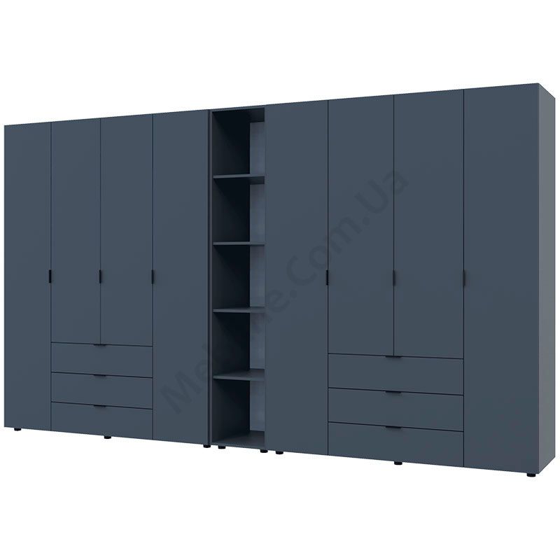 Дві чотиридверні шафи зі стелажем та висувними шухлядами.