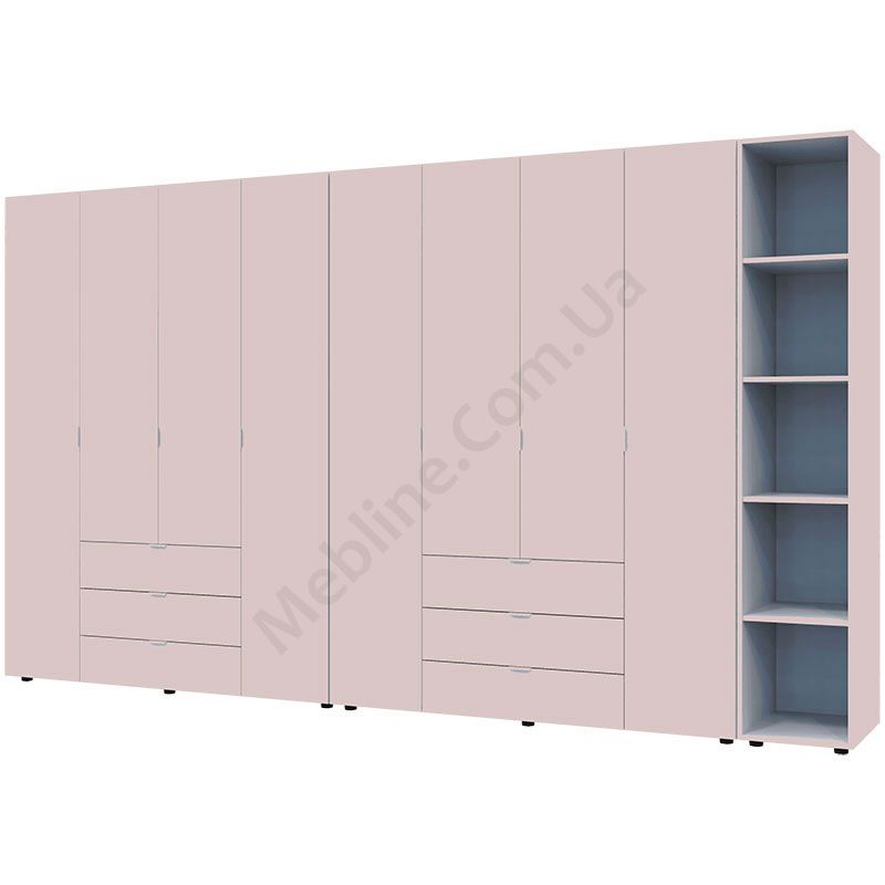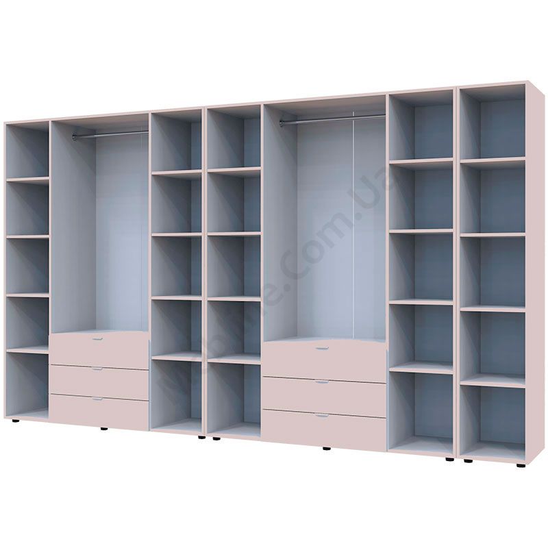 Дві чотиридверні шафи зі стелажем та висувними шухлядами.