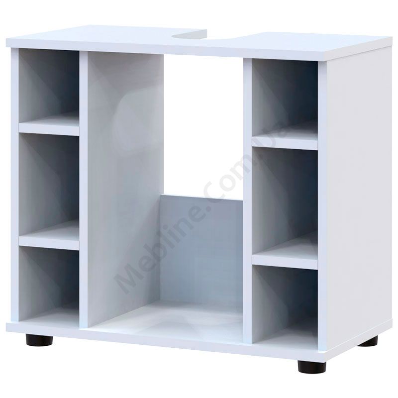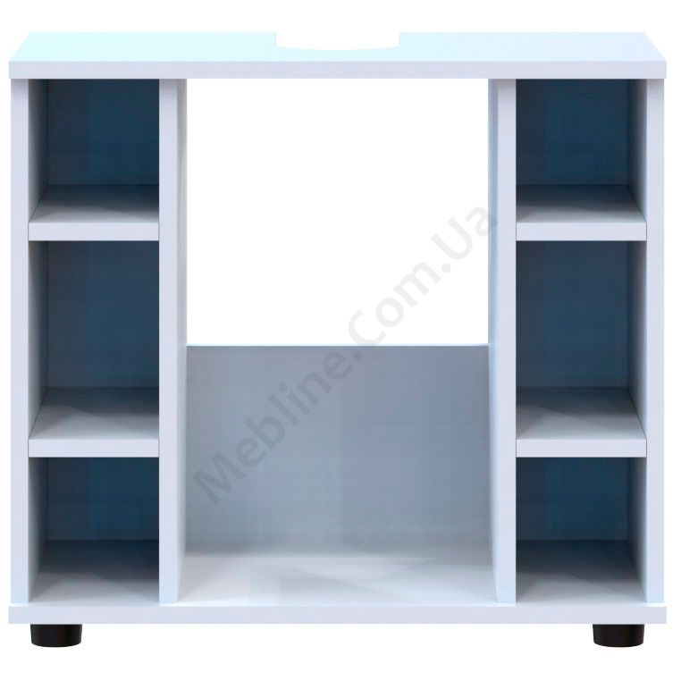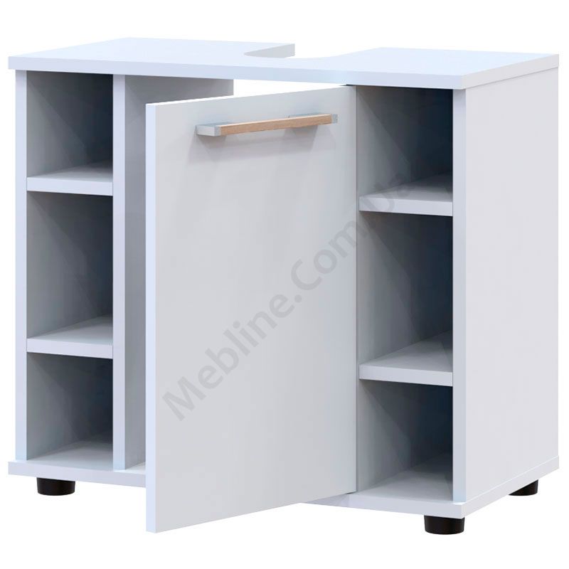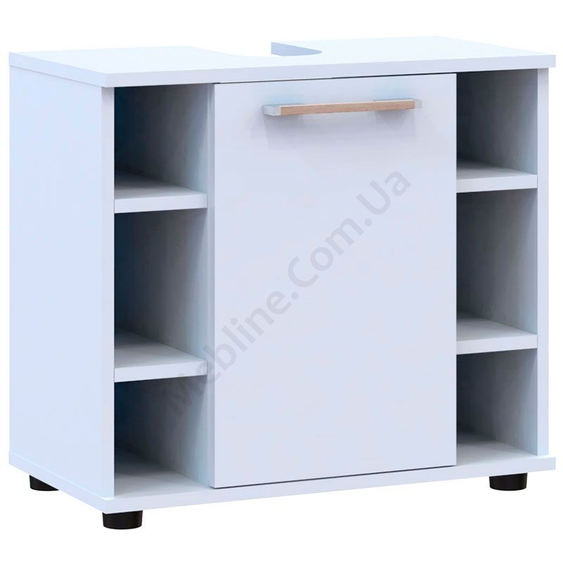 Тумба під умивальник з відкритими поличками та дверцятами.