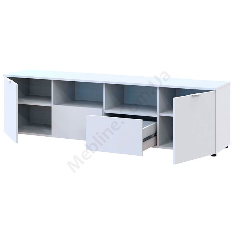 Тумба під телевізор з висувними шухлядами та дверцятами.