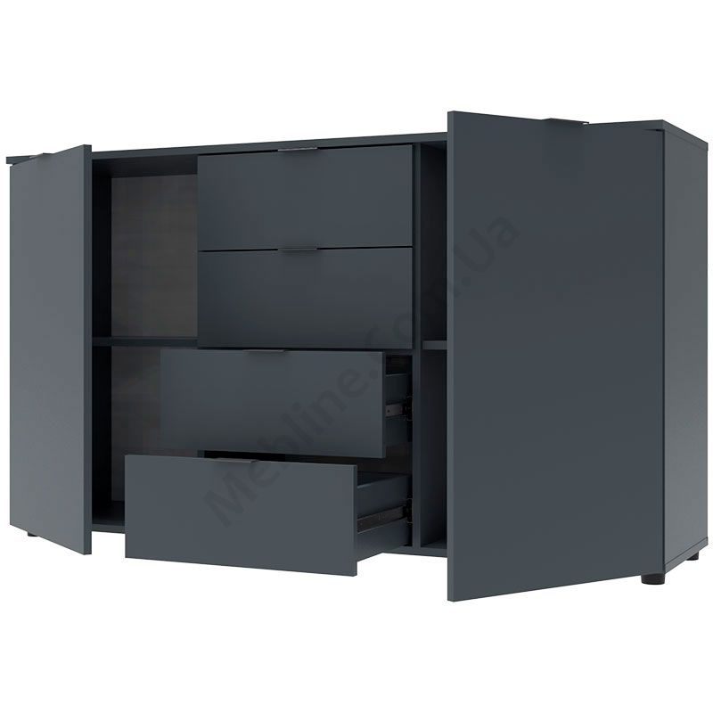 У магазині Ви можете купити Комод Рон 5 2 фасади 4 шухляди Графіт за доступною ціною та доставкою по всій Україні. Обирайте Комод (тумба) від фабрики Doros для облаштування передпокою, вітальні, спальні в інтернет магазині меблів.