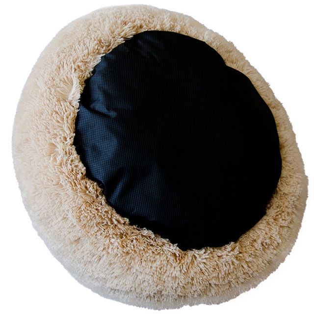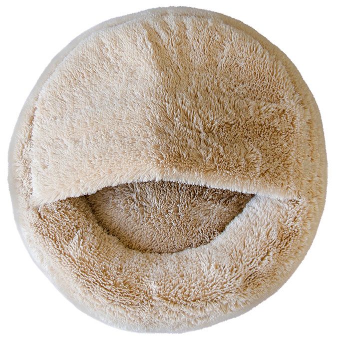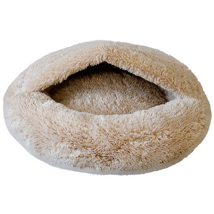 Круглий пухнастий лежак з каптуром.