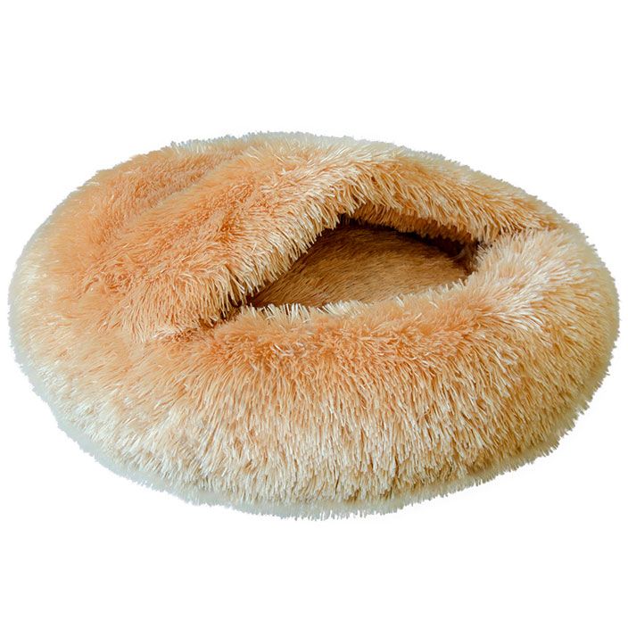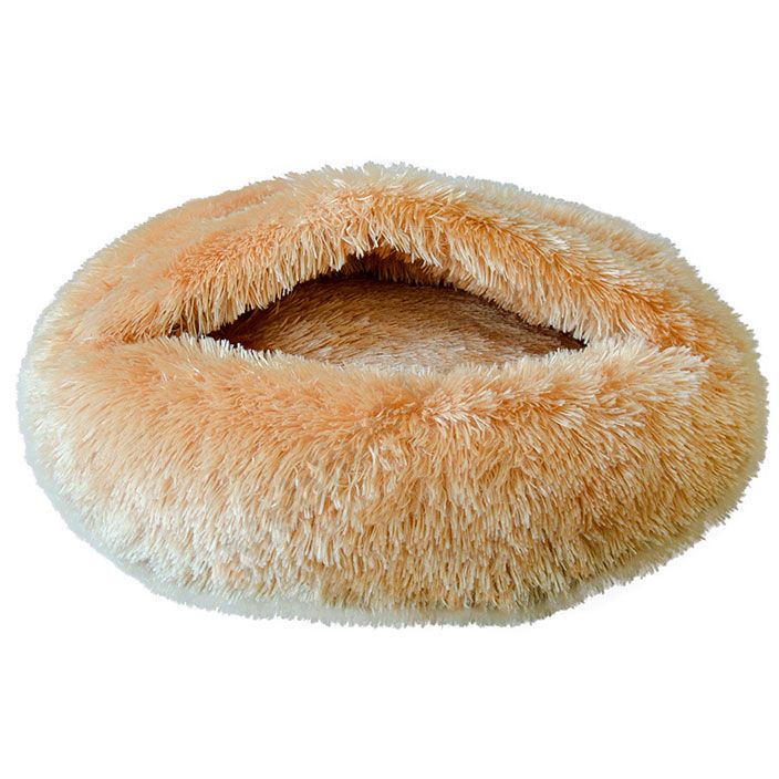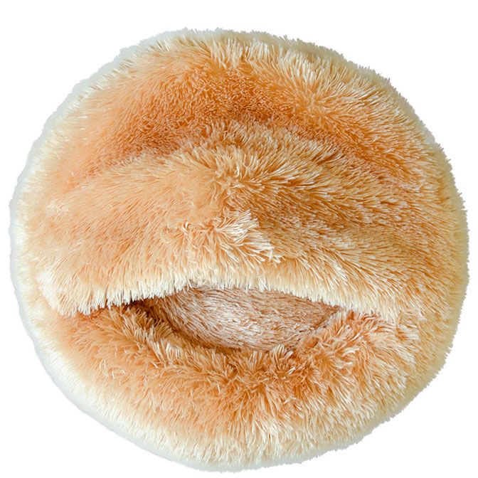 Круглий пухнастий лежак з каптуром.