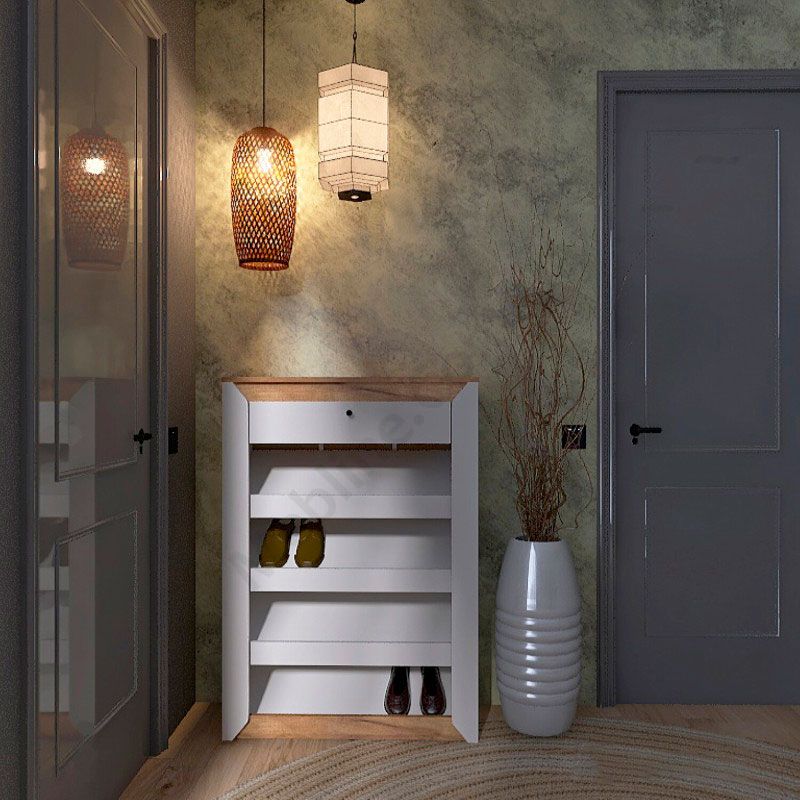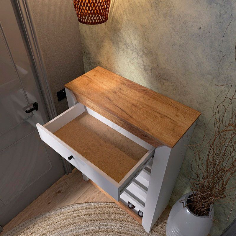 У магазині Ви можете купити Тумба під взуття 800 Нордик Дуб Крафт Золотий + Білий за доступною ціною та доставкою по всій Україні. Обирайте Полиця для взуття від фабрики Еверест для облаштування передпокою в інтернет магазині меблів.