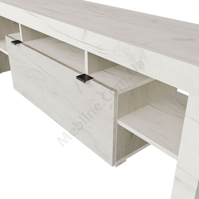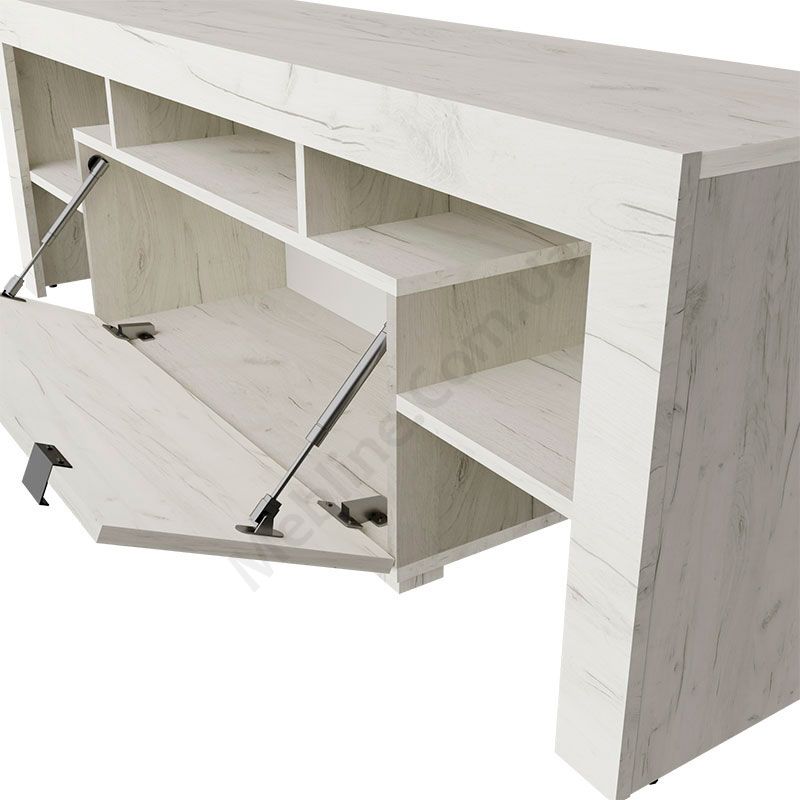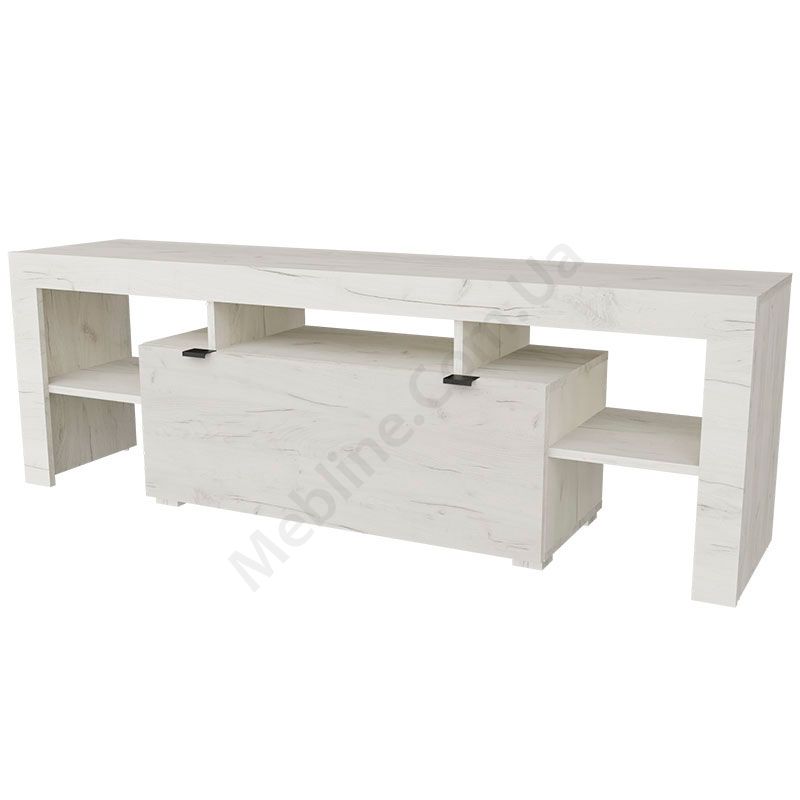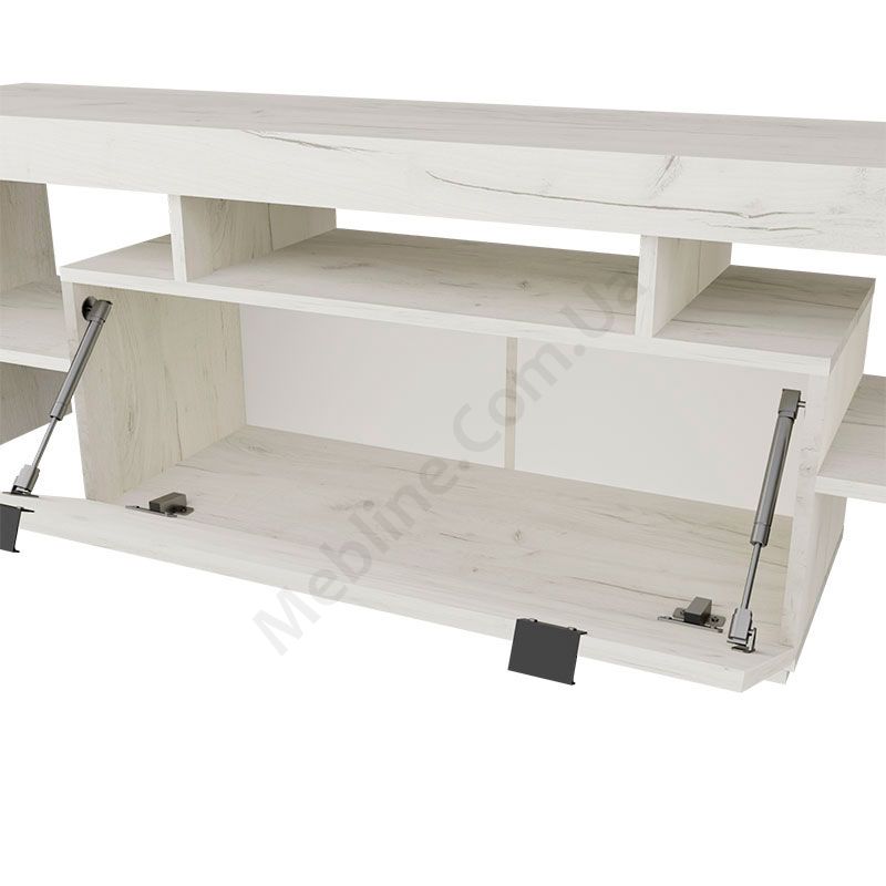 Тумба під телевізор з відкритими поличками та відкидними дверцятами.