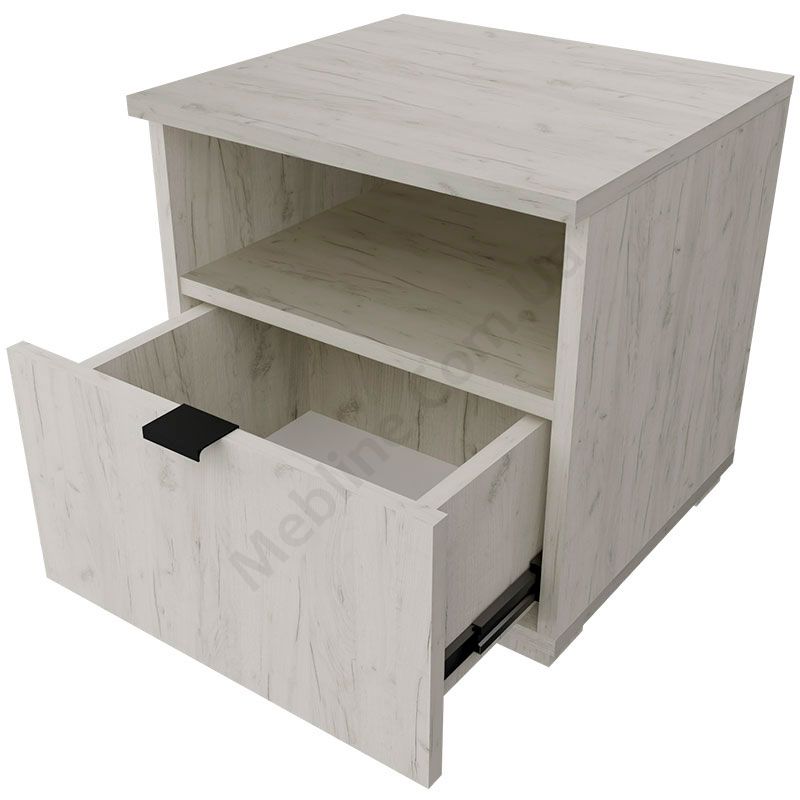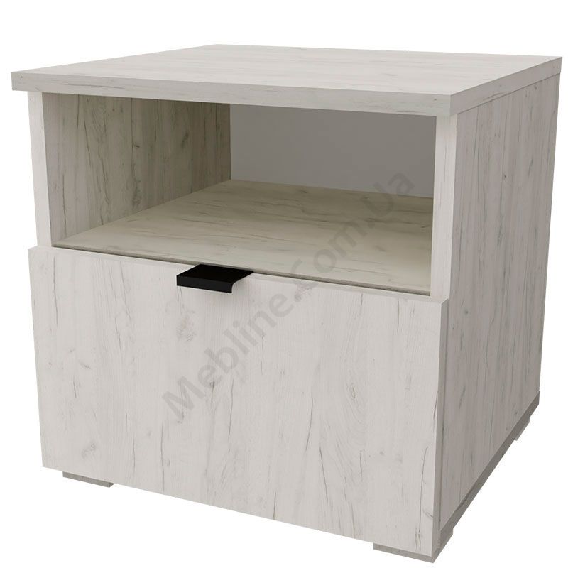 Приліжкова тумба з висувною шухлядою та відкритою полицею.