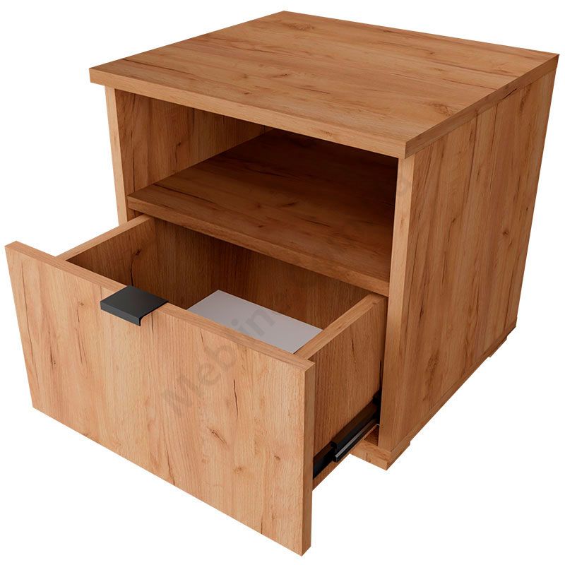 Приліжкова тумба з висувною шухлядою та відкритою полицею.