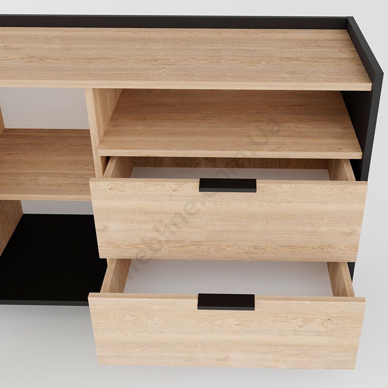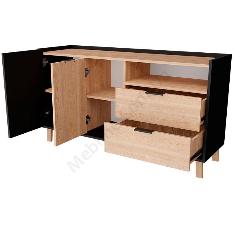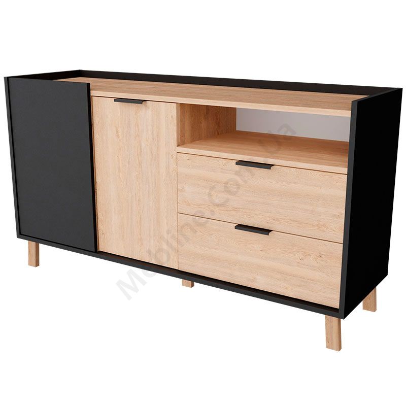 Комод з висувними шухлядами, дверцятами та відкритою поличкою.