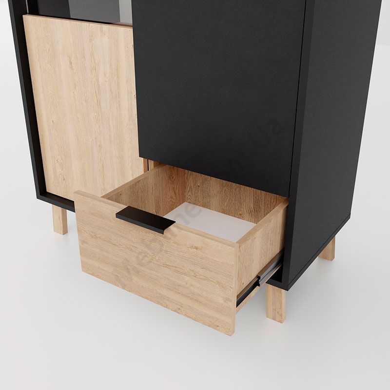 - Одна розпашна дверка зі скляною вставкою та одна з ДСП.