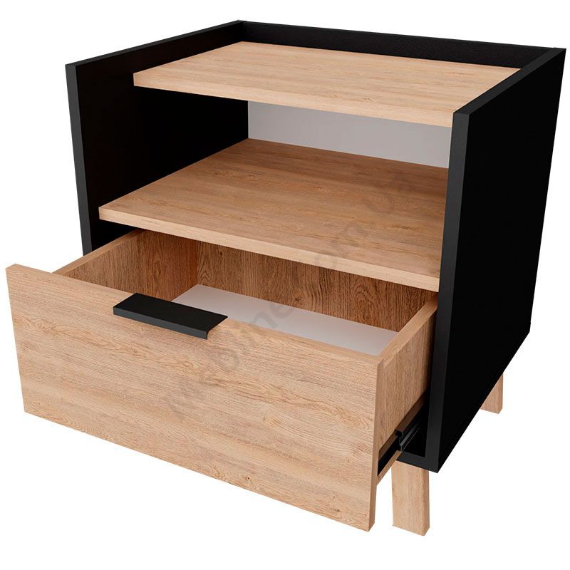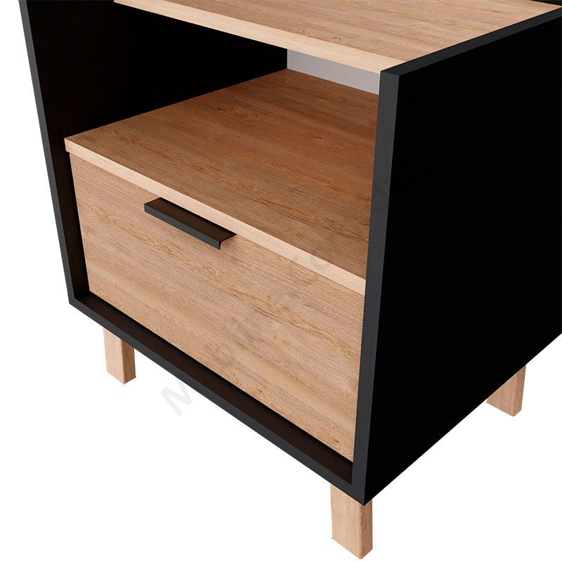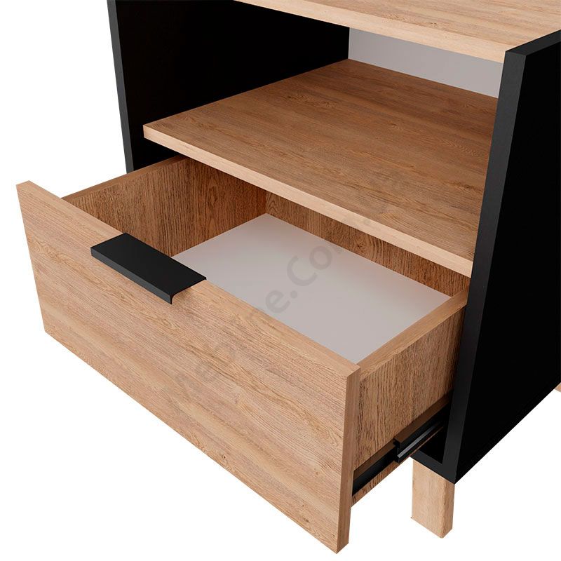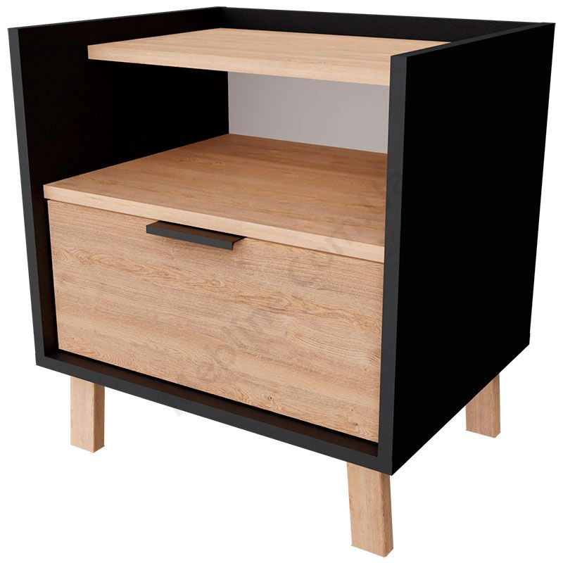 Приліжкова тумба з висувною шухлядою та відкритою полицею.