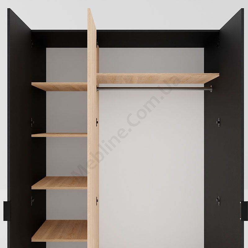 - За двома дверцятами штанга для одягу та верхня полиця.