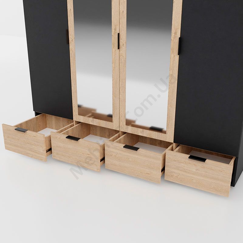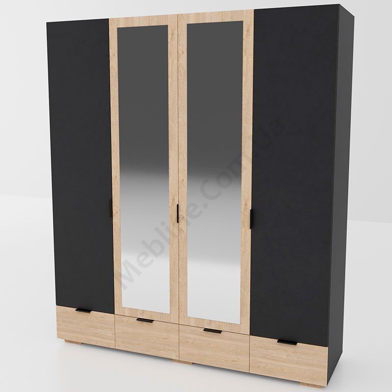 Чотиридверна шафа на ніжках з дзеркалами та висувними шухлядами.