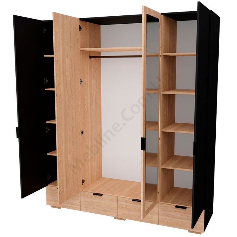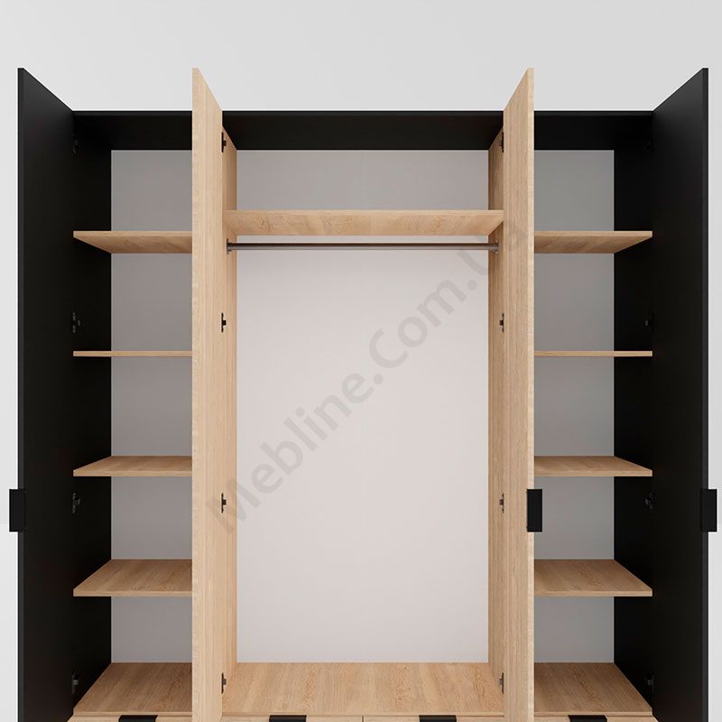 - За двома середніми дверцятами штанга для одягу та верхня полиця.