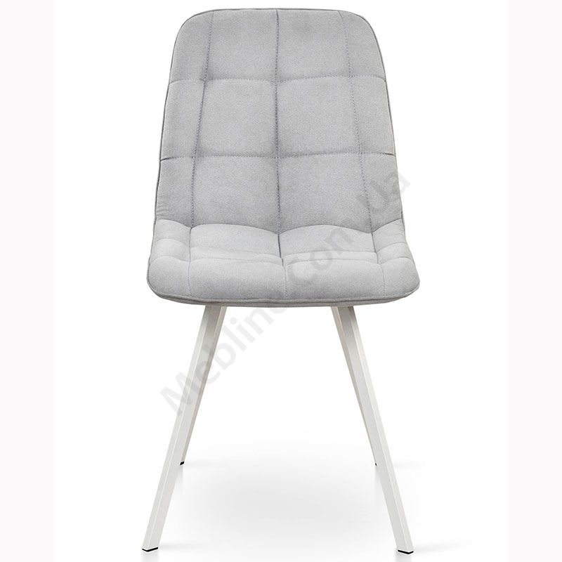 М’який стілець без підлокітників на металевих ніжках із тканинною оббивкою.