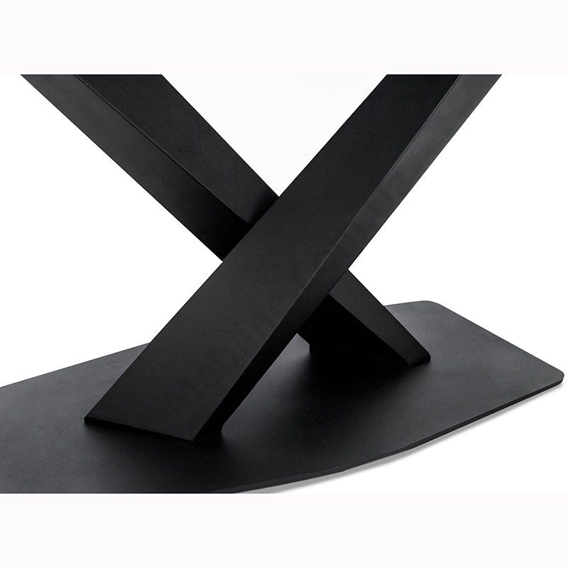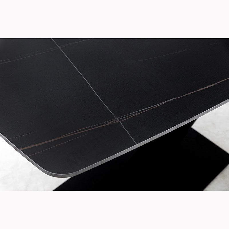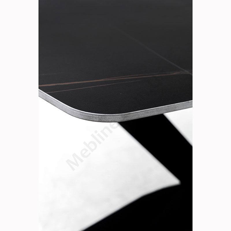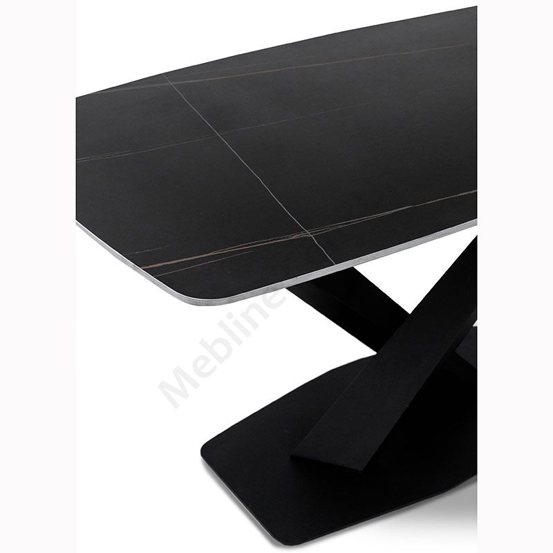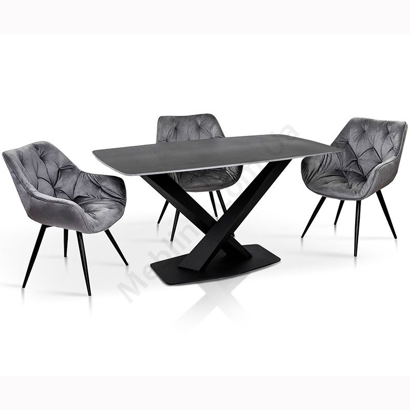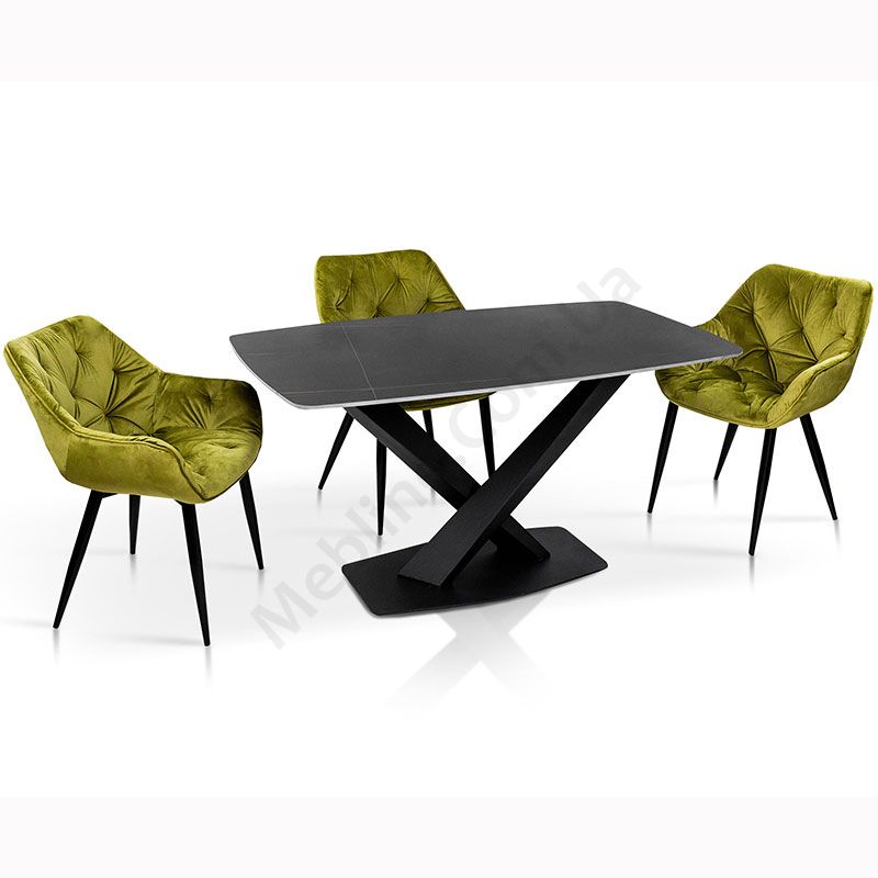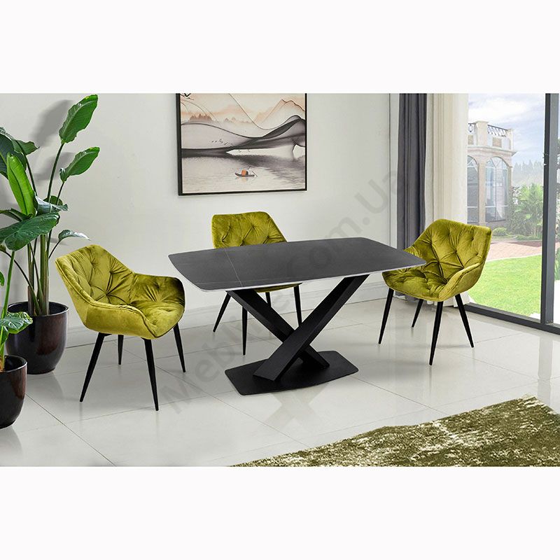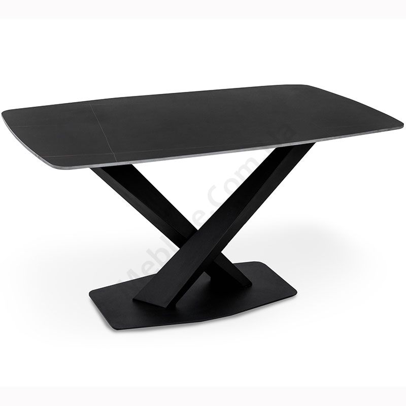 Нерозкладний обідній стіл з керамічною стільницею на металевих ніжках.