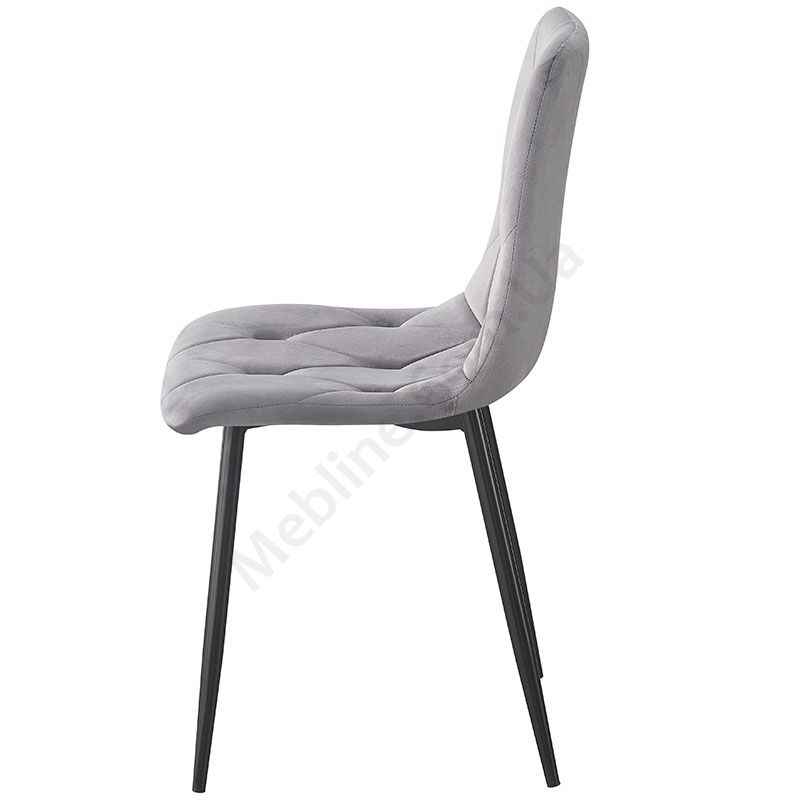 М’який стілець без підлокітників на металевих ніжках з оббивкою із велюру.