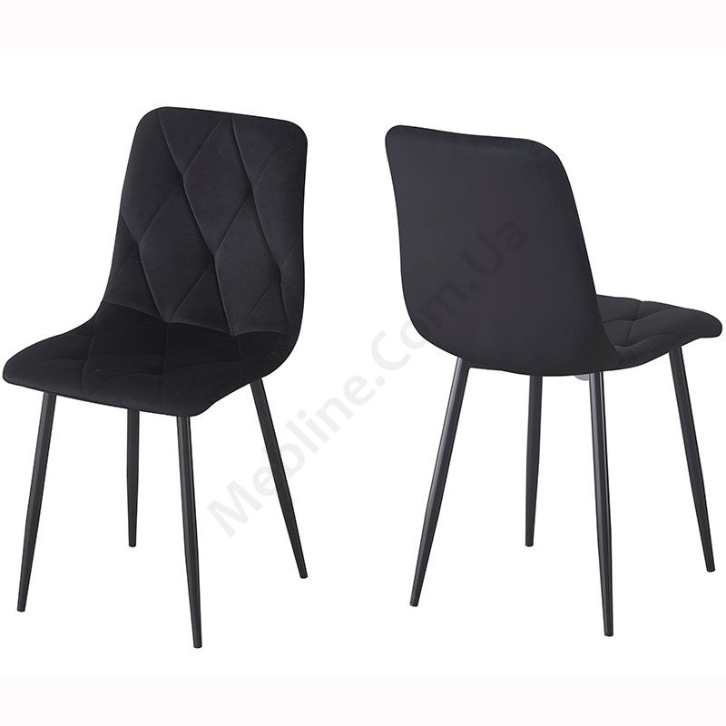 М’який стілець без підлокітників на металевих ніжках з оббивкою із велюру.