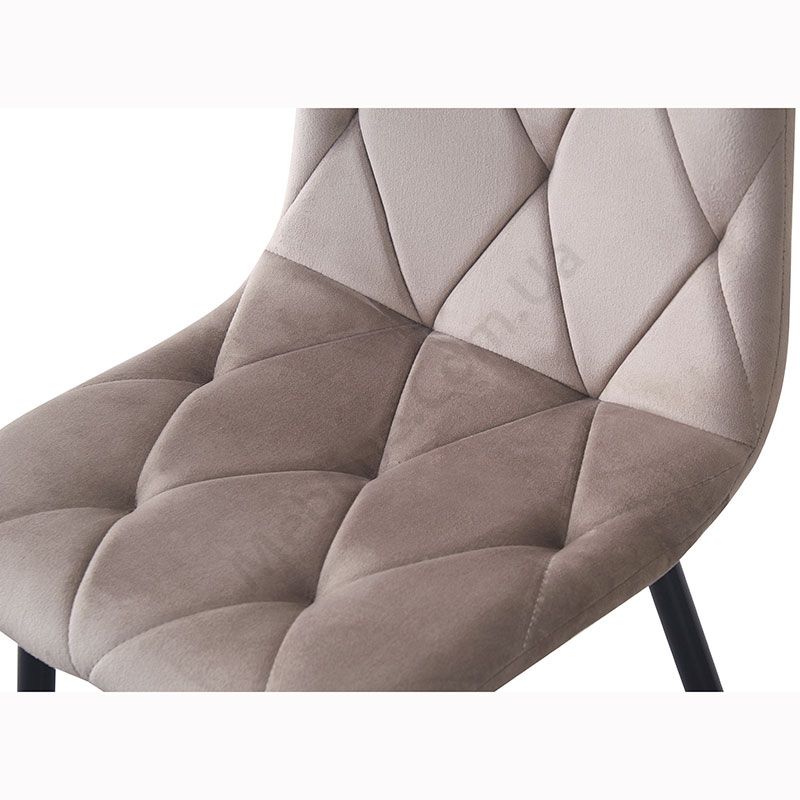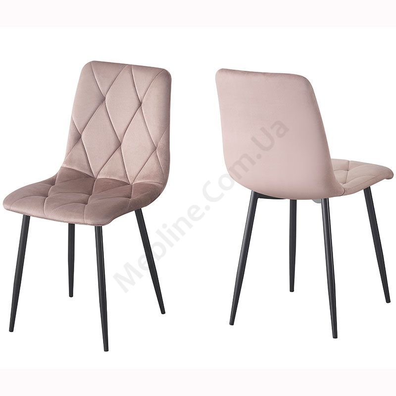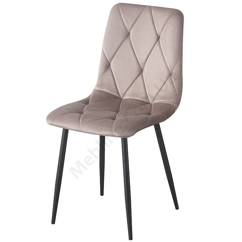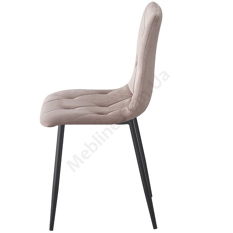 М’який стілець без підлокітників на металевих ніжках з оббивкою із велюру.