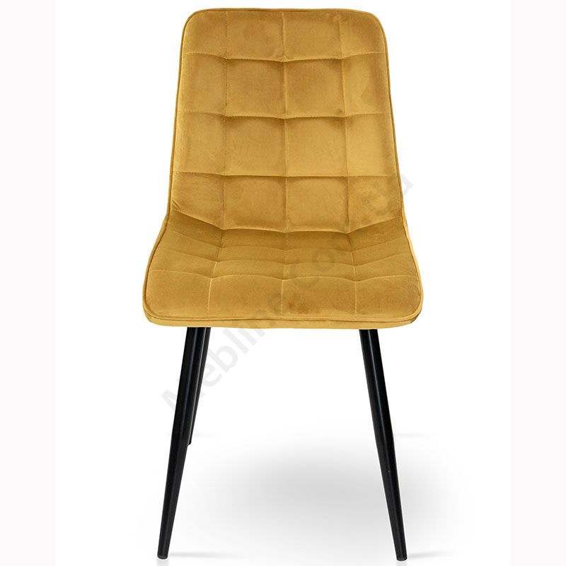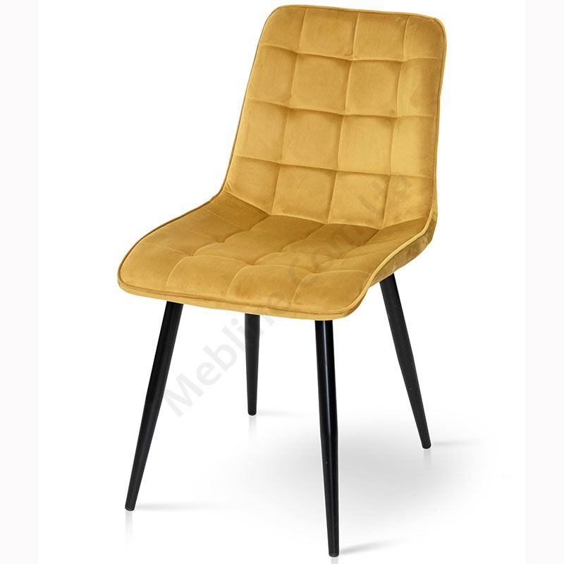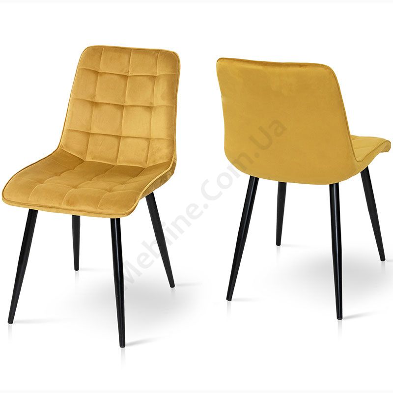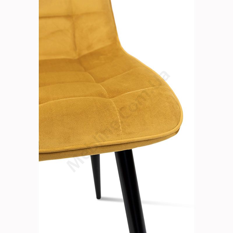 М’який стілець без підлокітників на металевих ніжках з оббивкою із велюру.