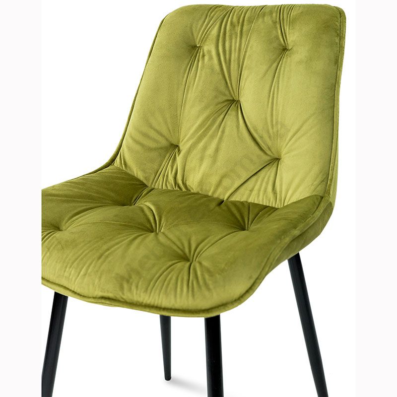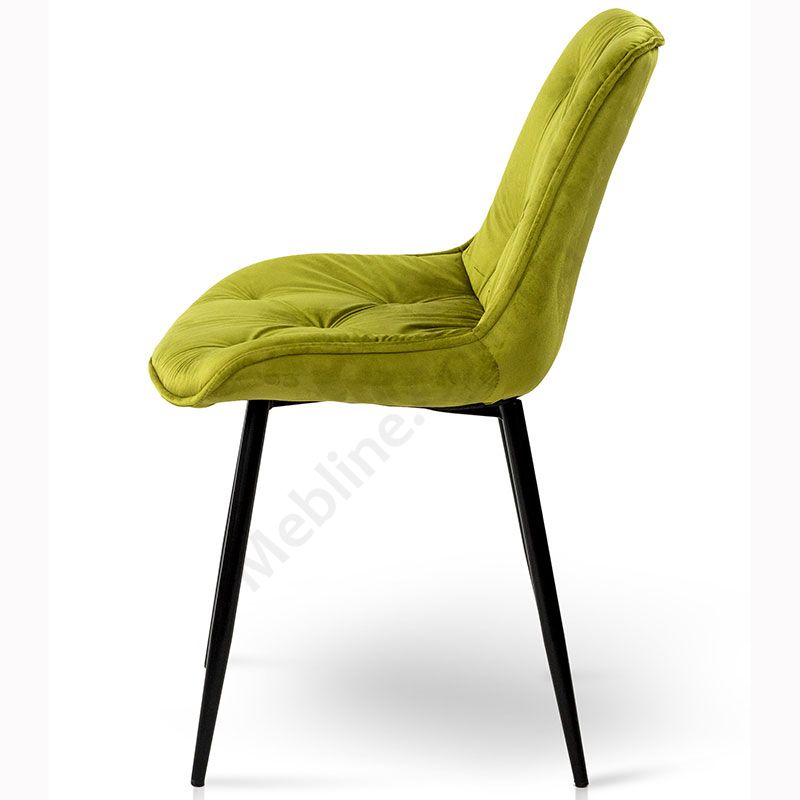 М’який стілець без підлокітників на металевих ніжках з оббивкою із велюру.