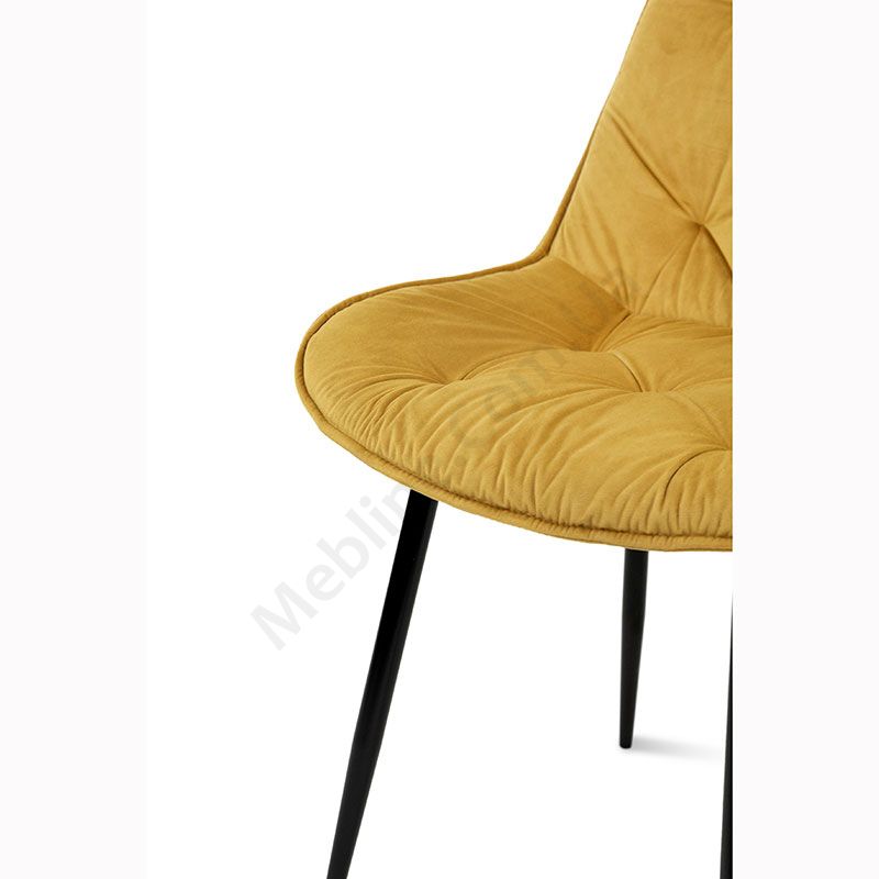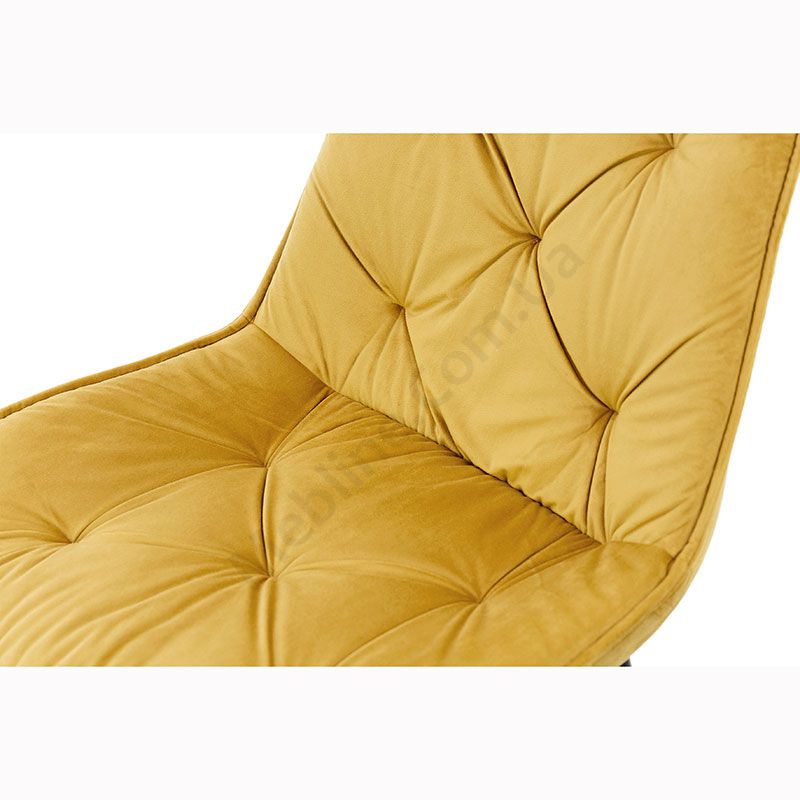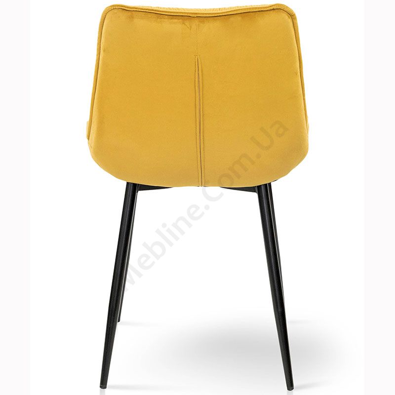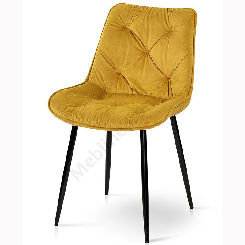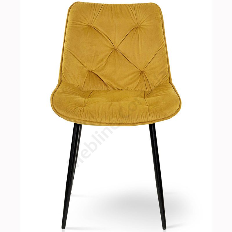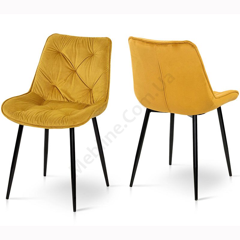 М’який стілець без підлокітників на металевих ніжках з оббивкою із велюру.