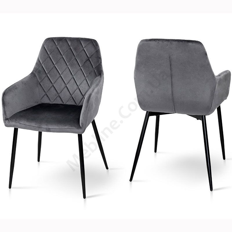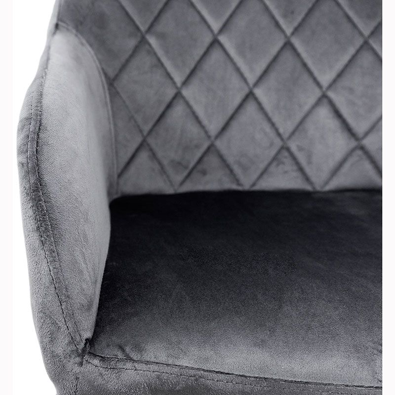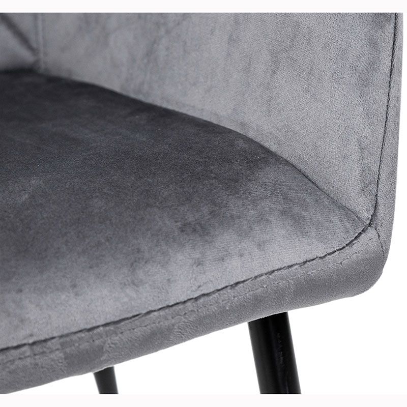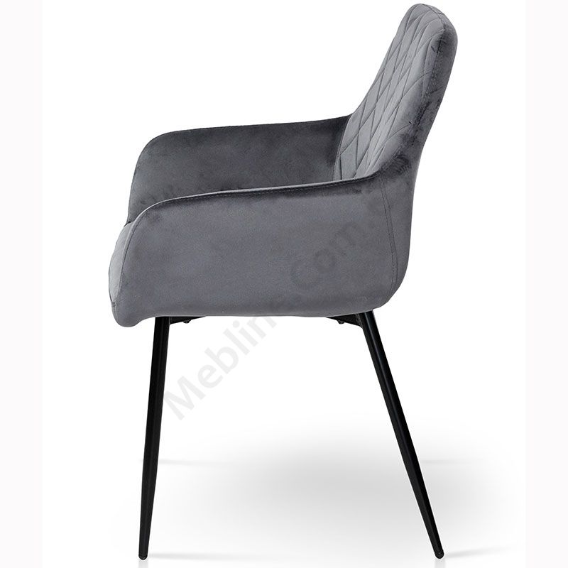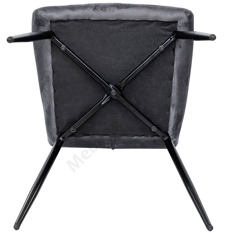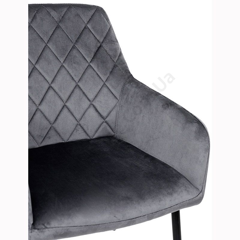 Крісло на металевих ніжках з велюровою оббивкою сірого кольору.