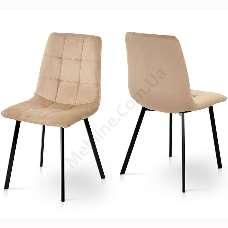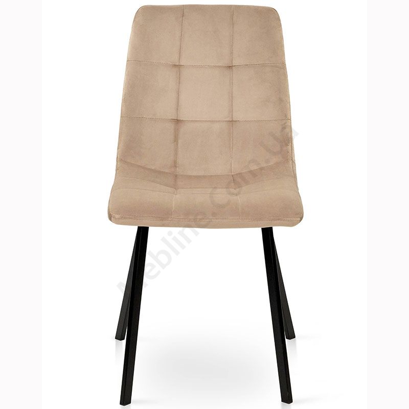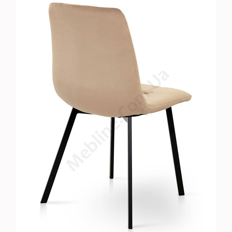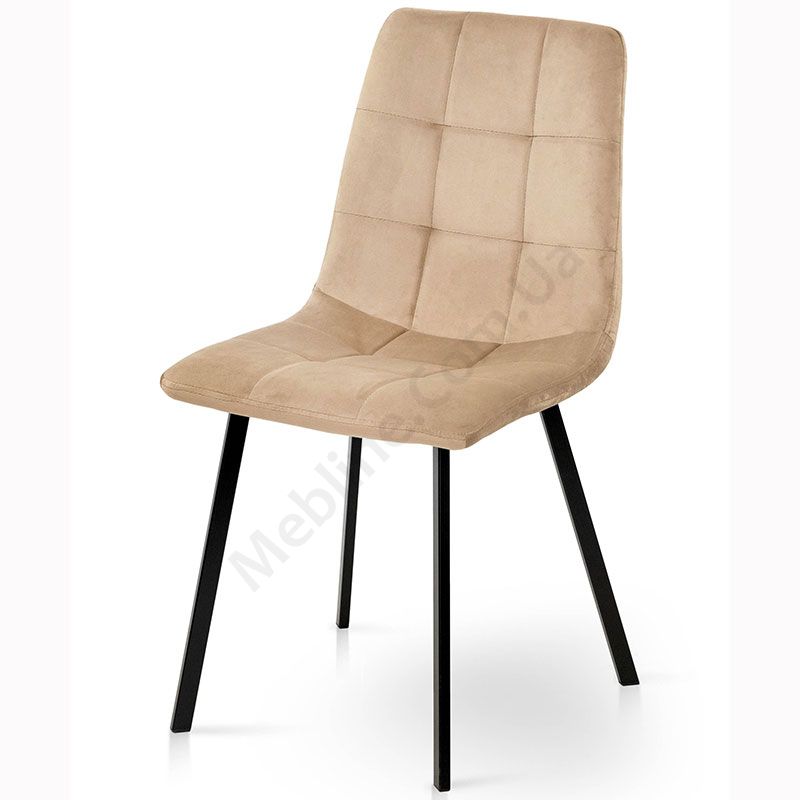 М’який стілець без підлокітників на металевих ніжках з оббивкою із велюру.