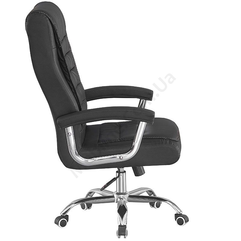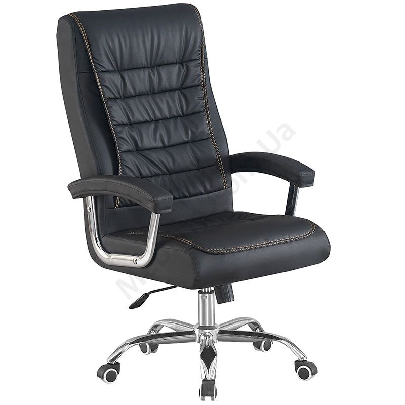 Комп’ютерне крісло на металевій хрестовині з м’якими підлокітниками.