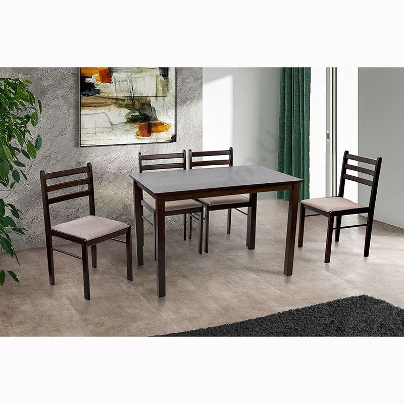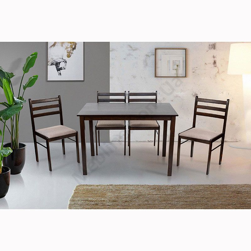 Кухонний дерев’яний комплект зі столу та чотирьох стільців.