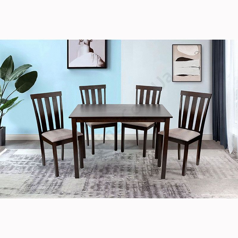 Кухонний дерев’яний комплект зі столу та чотирьох стільців.