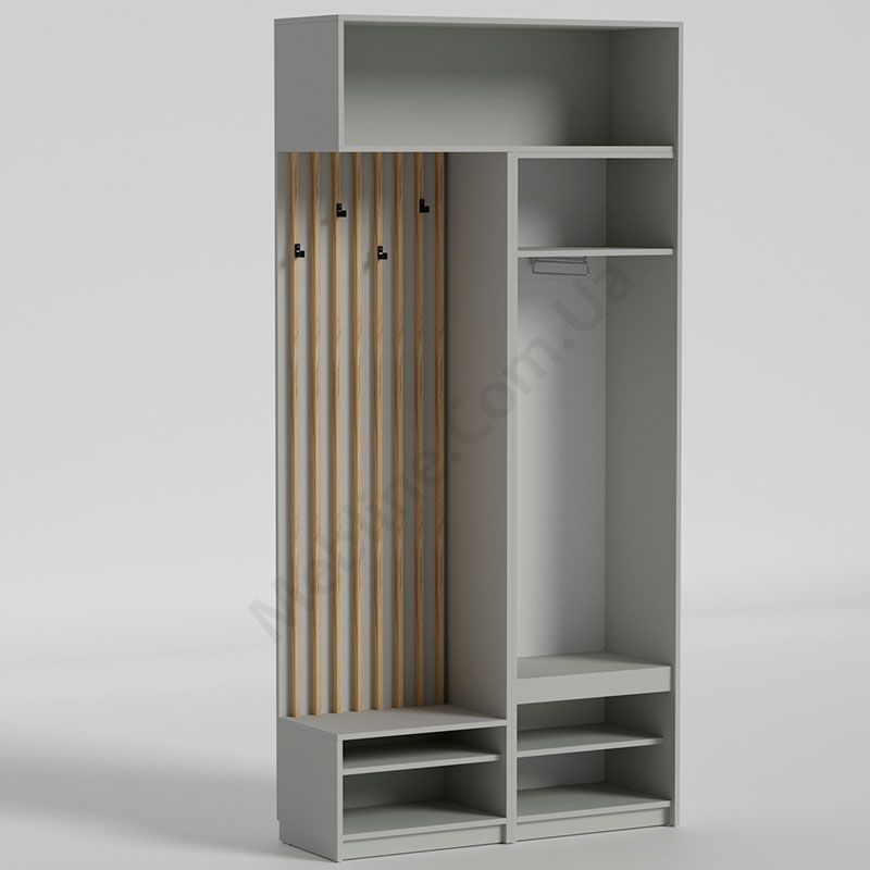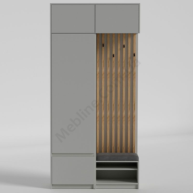 Передпокій з шафою, вішаком та тумбою для взуття.