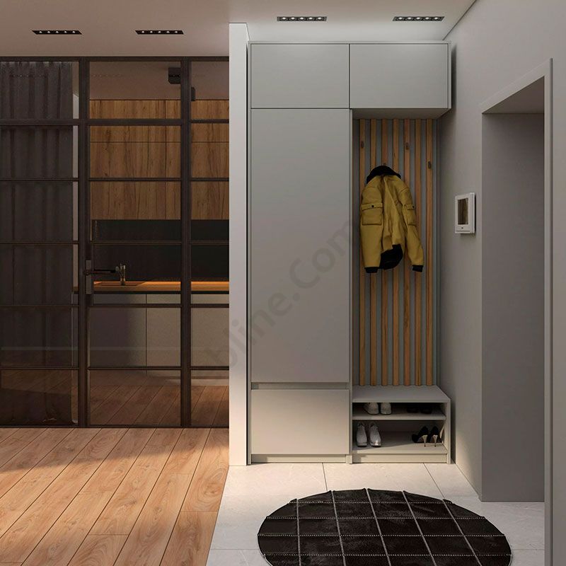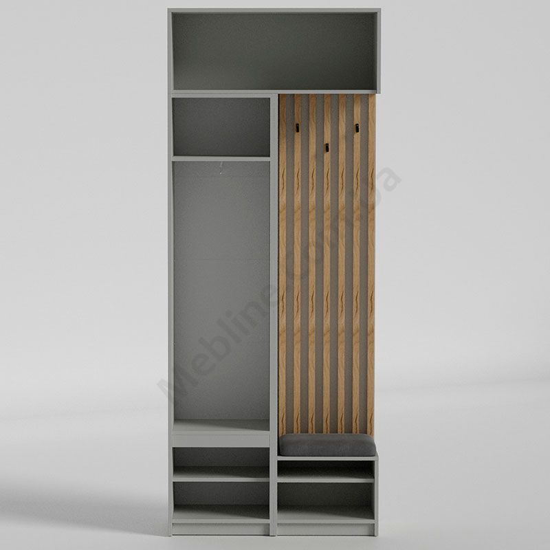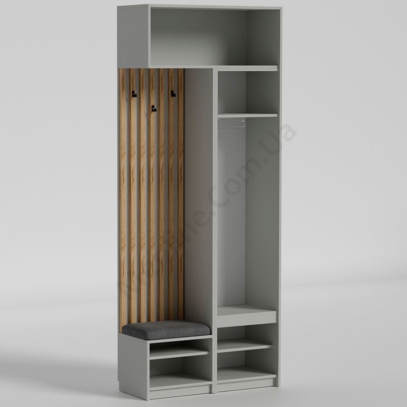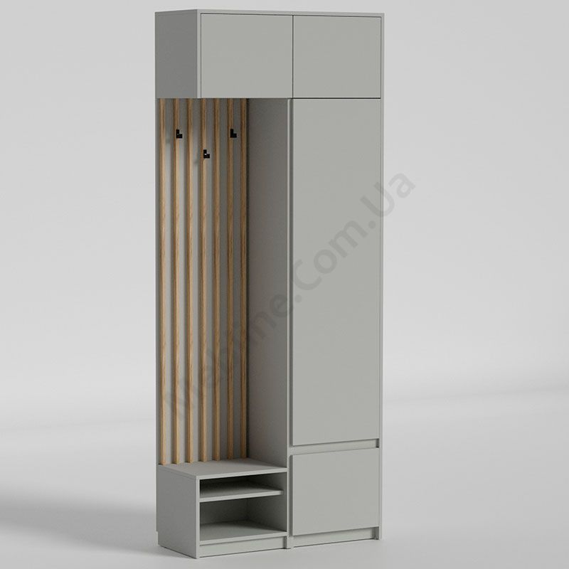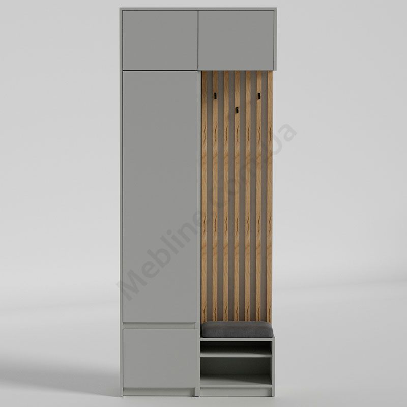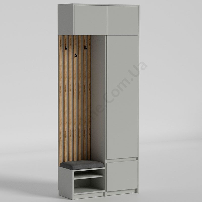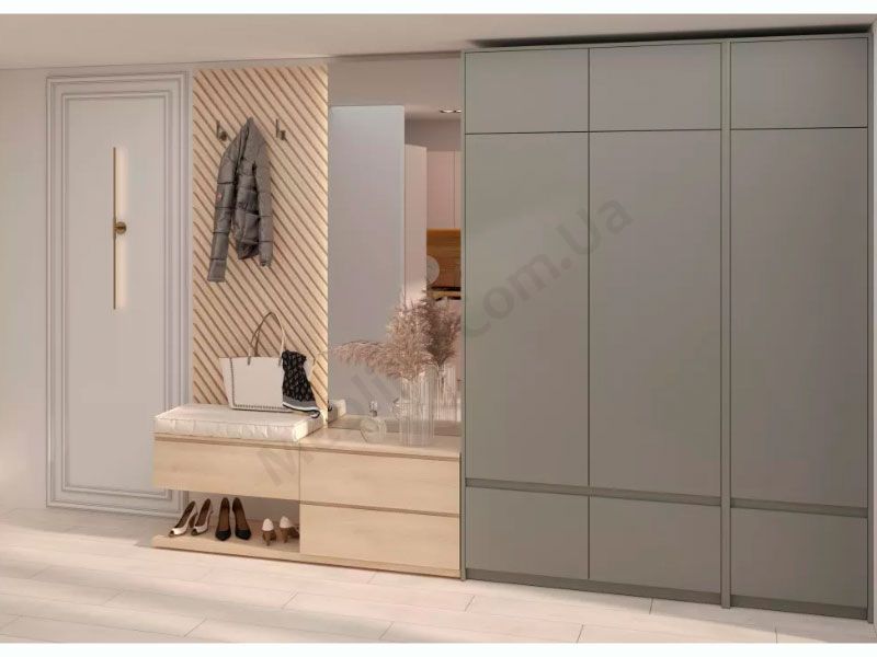Передпокій з шафою, вішаком та тумбою для взуття.
