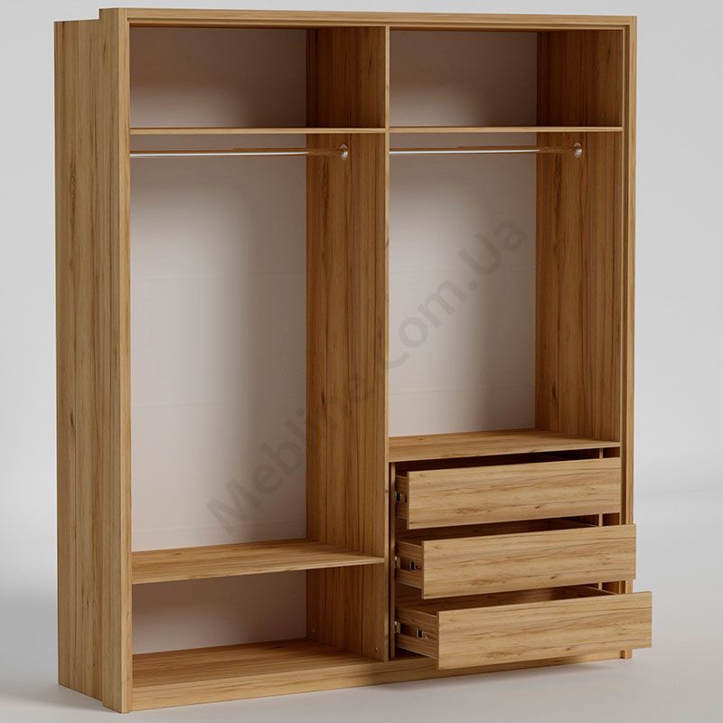 Чотиридверна шафа з дотягувачем, штангами та шухлядами.