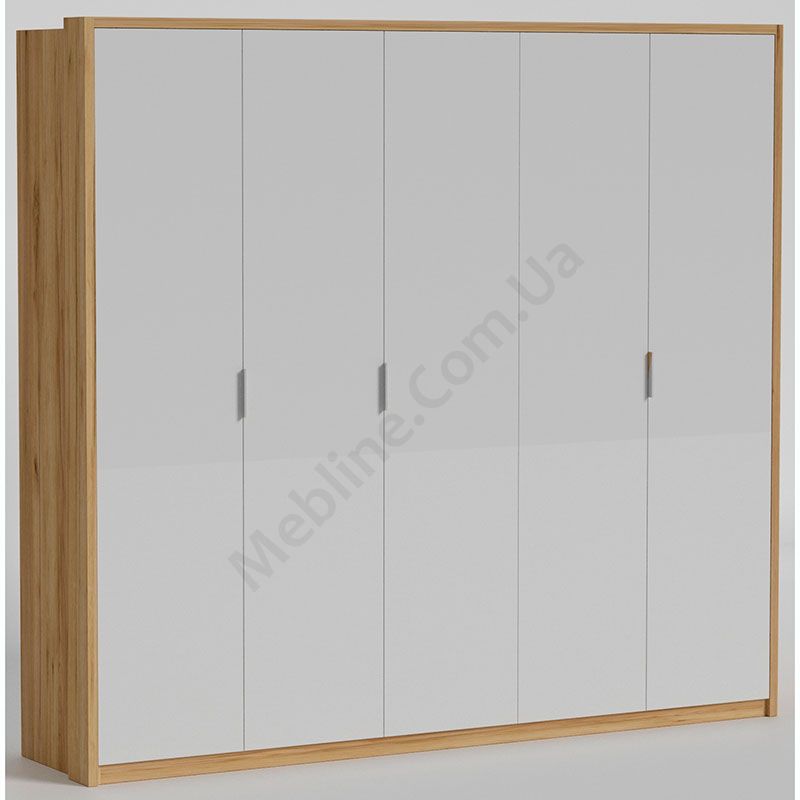 П’ятидверна шафа з полицями, штангами та шухлядами.