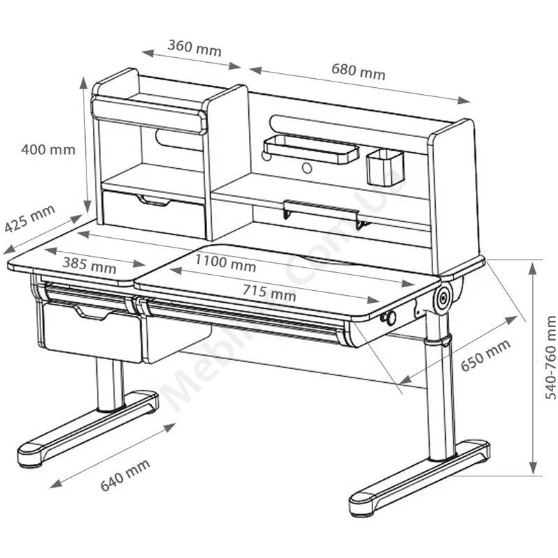 - Надбудова з однією шухлядою, трьома полицями та висувною підставкою для книг.