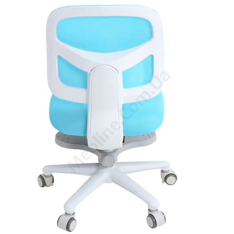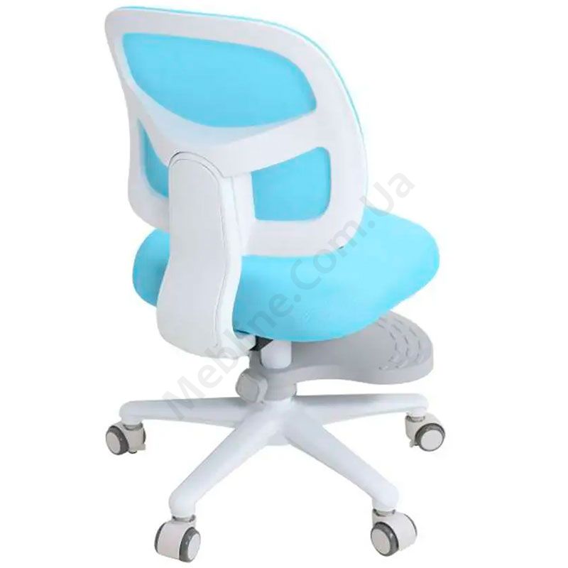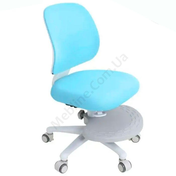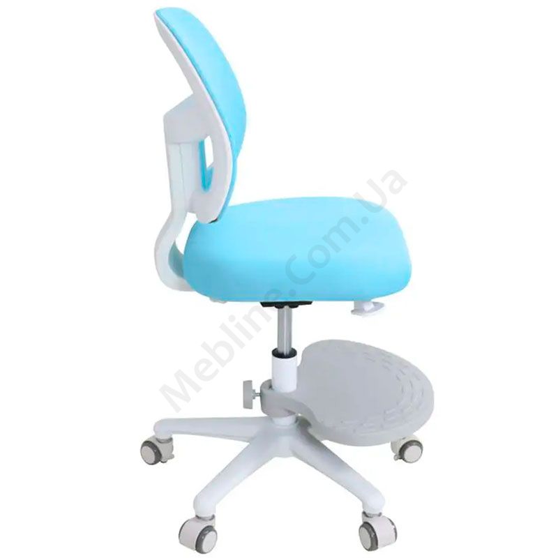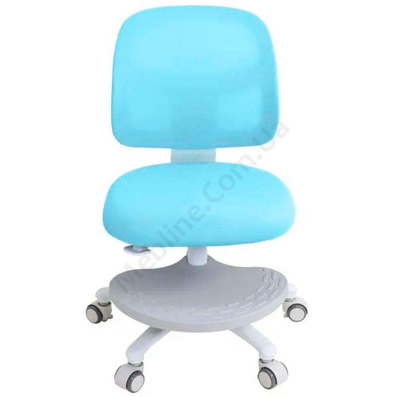 Поворотне крісло для дітей блакитного кольору з підставкою для ніг.