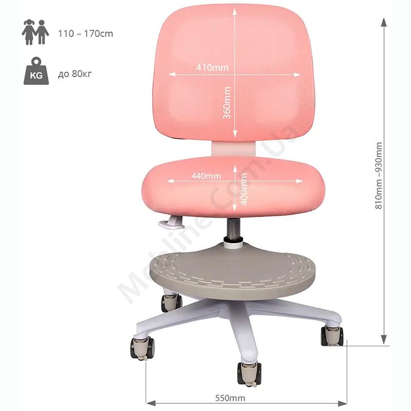 Поворотне крісло для дітей рожевого кольору з підставкою для ніг.