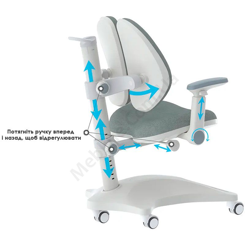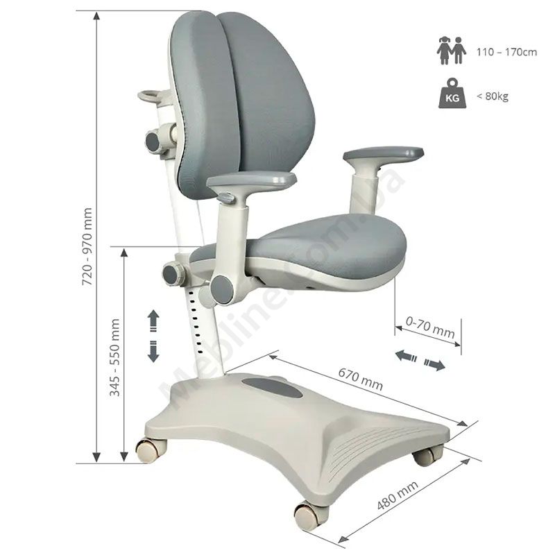 Ортопедичне крісло для школяра сірого кольору з регулюванням висоти та глибини.