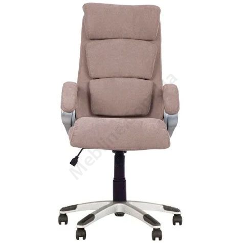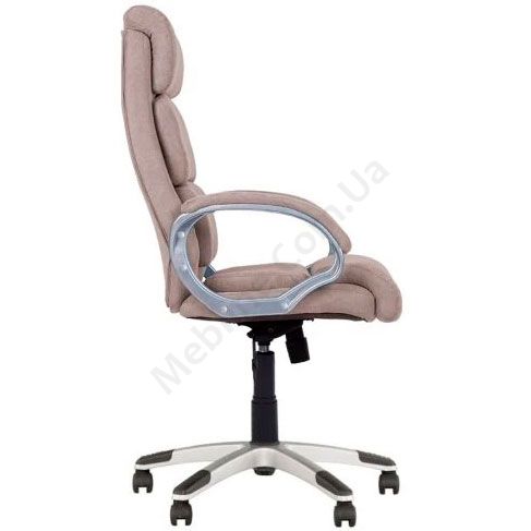 Крісло для керівника з високою спинкою та інтегрованим підголівником, підлокітниками з м’якими накладками, фіксацією у вертикальному положенні, на пластиковій основі.