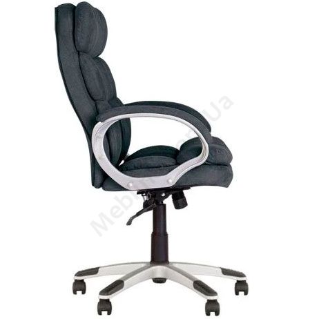 М’яке крісло для керівника з нерегульованими підлокітниками з м’якими накладками, фіксацією в будь-якому положенні, на пластиковій основі.