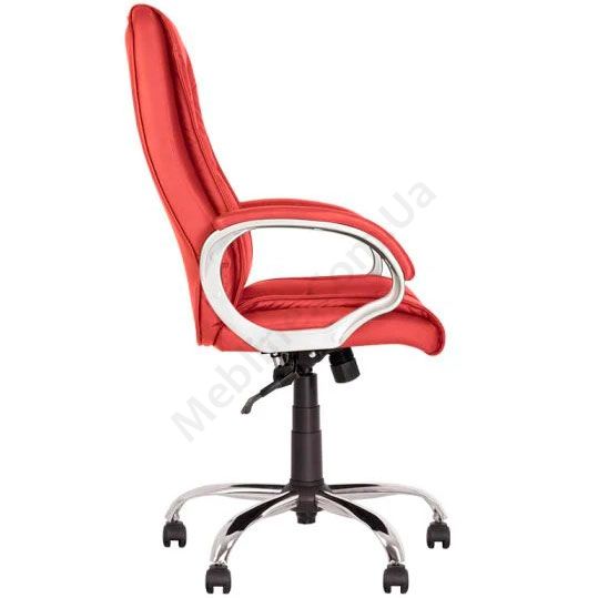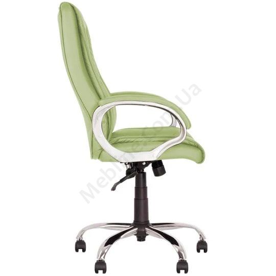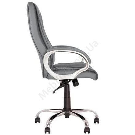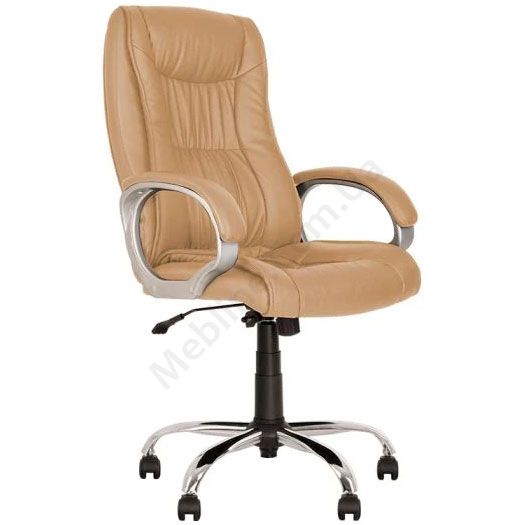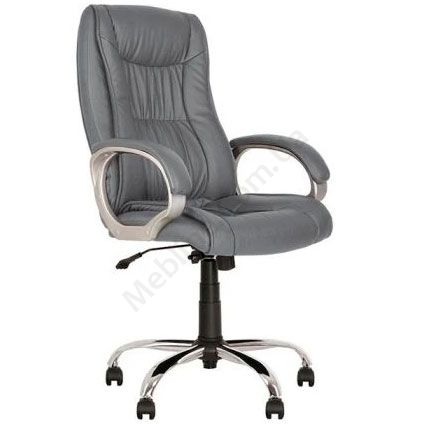 М’яке крісло для керівника з інтегрованим підголівником, нерегульованими підлокітниками з м’якими накладками, фіксацією в будь-якому положенні, на хромованій основі.