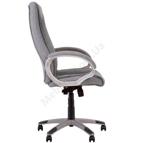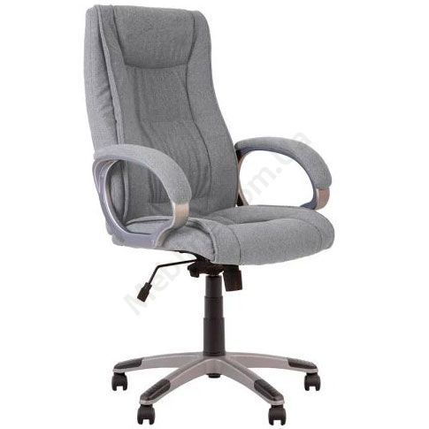 М’яке крісло для керівника з інтегрованим підголівником, нерегульованими підлокітниками з м’якими накладками, фіксацією в будь-якому положенні, на пластиковій основі.