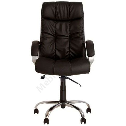 М’яке крісло для керівника з інтегрованим підголівником, нерегульованими підлокітниками з м’якими накладками, фіксацією в будь-якому положенні, на хромованій основі.