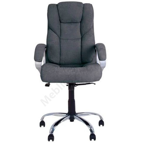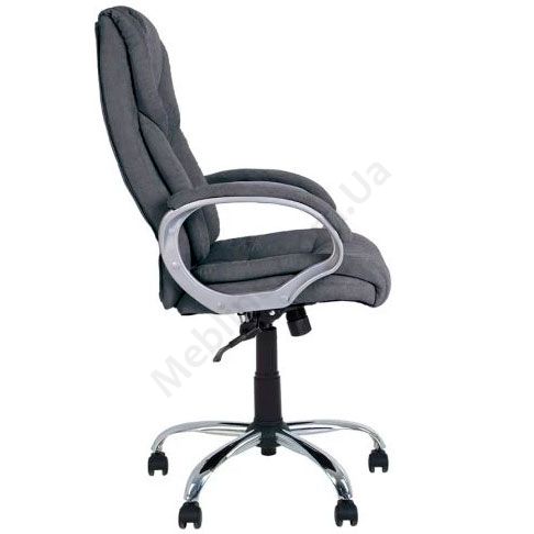 М’яке крісло для керівника з інтегрованим підголівником, підлокітниками з м’якими накладками, фіксацією у вертикальному положенні, на хромованій основі.
