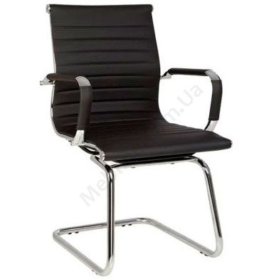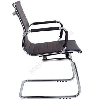 Тонке крісло для конференцій в класичному стилі, низькою спинкою, підлокітниками з м’якими накладками, на металевій основі.