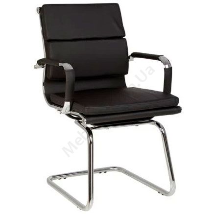 М’яке крісло для конференцій в класичному стилі, низькою спинкою, підлокітниками з м’якими накладками, на металевій основі.