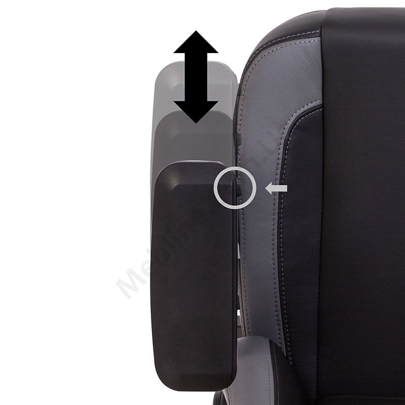 - Пластикові посилені підлокітники регулюються за висотою та вліво-вправо.