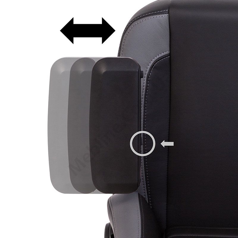 - Накладки підлокітників зсуваються вперед-назад і в сторони, збільшуючи відстань між підлокітниками.