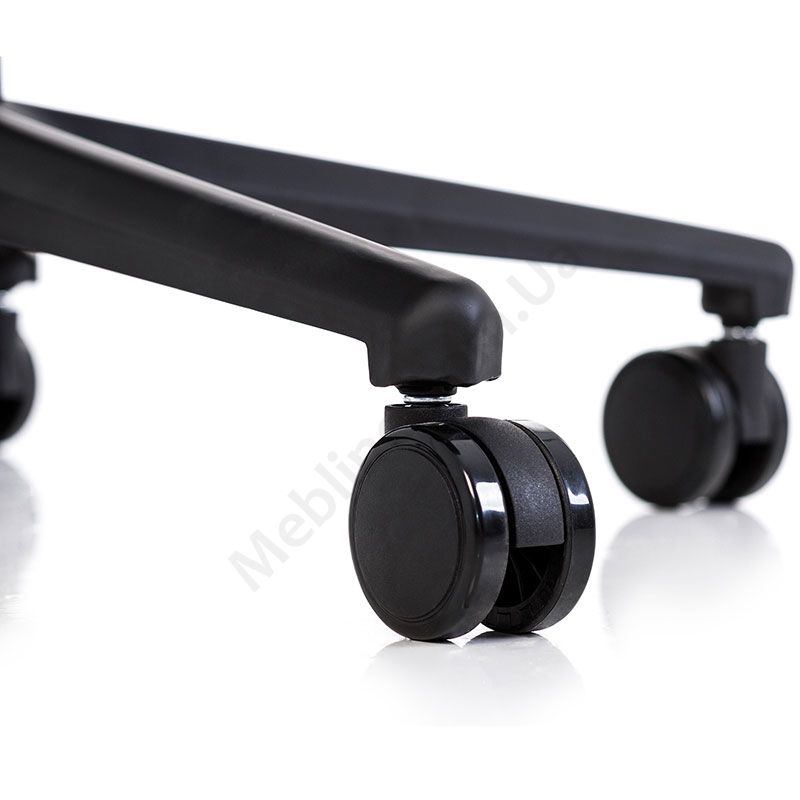 - Прогумовані ролики, діаметром 65 мм, переміщуються тихо і плавно як по паркету, так і по килимовим покриттям.